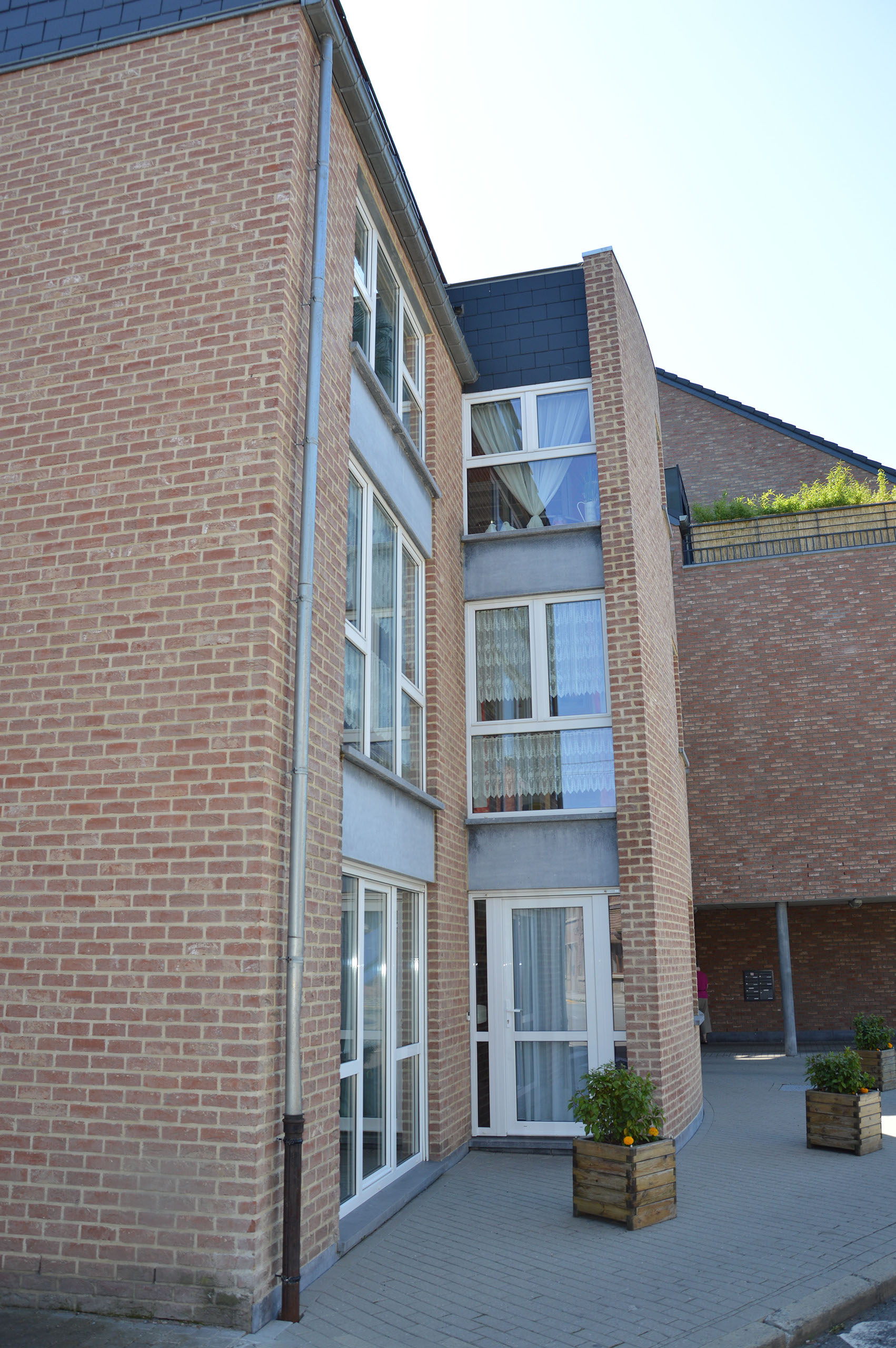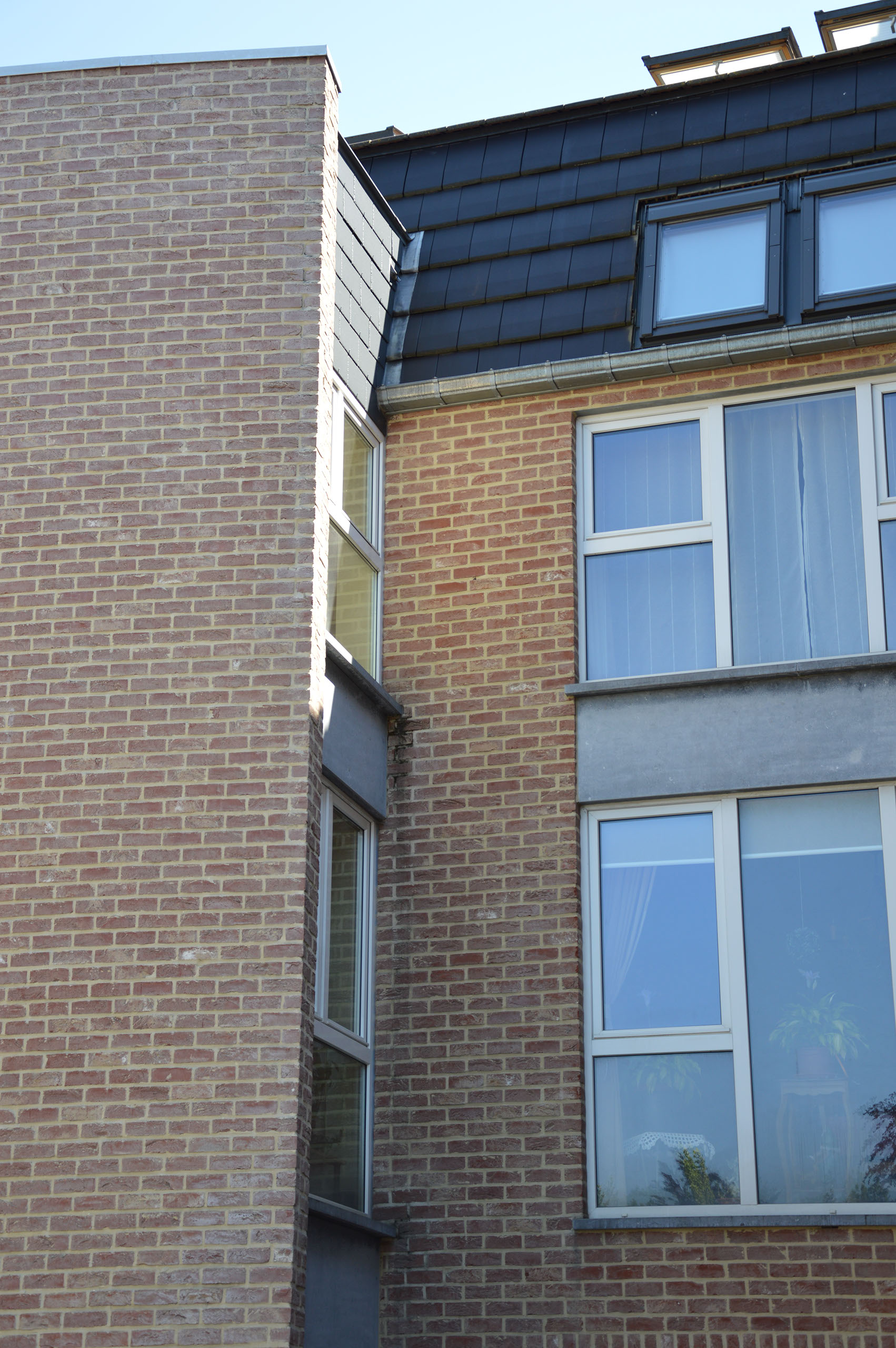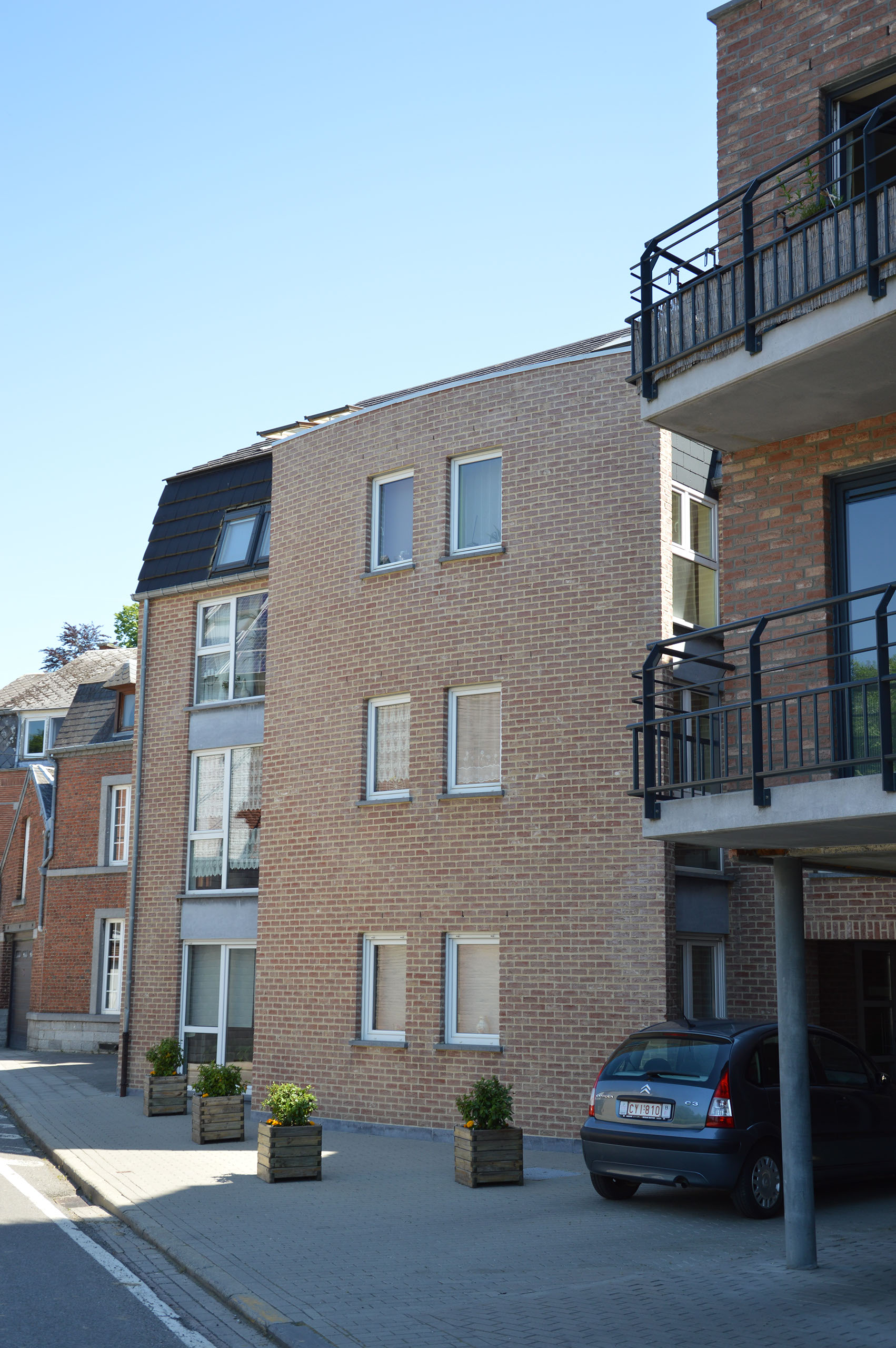 Immeuble en briques et en tuiles, destiné à la promotion, composé d'un corps principal de 4 niveaux, d'un corps secondaire à 3 niveaux et d'une avancée cintrée assortie, destinée à capter un maximum de lumière.