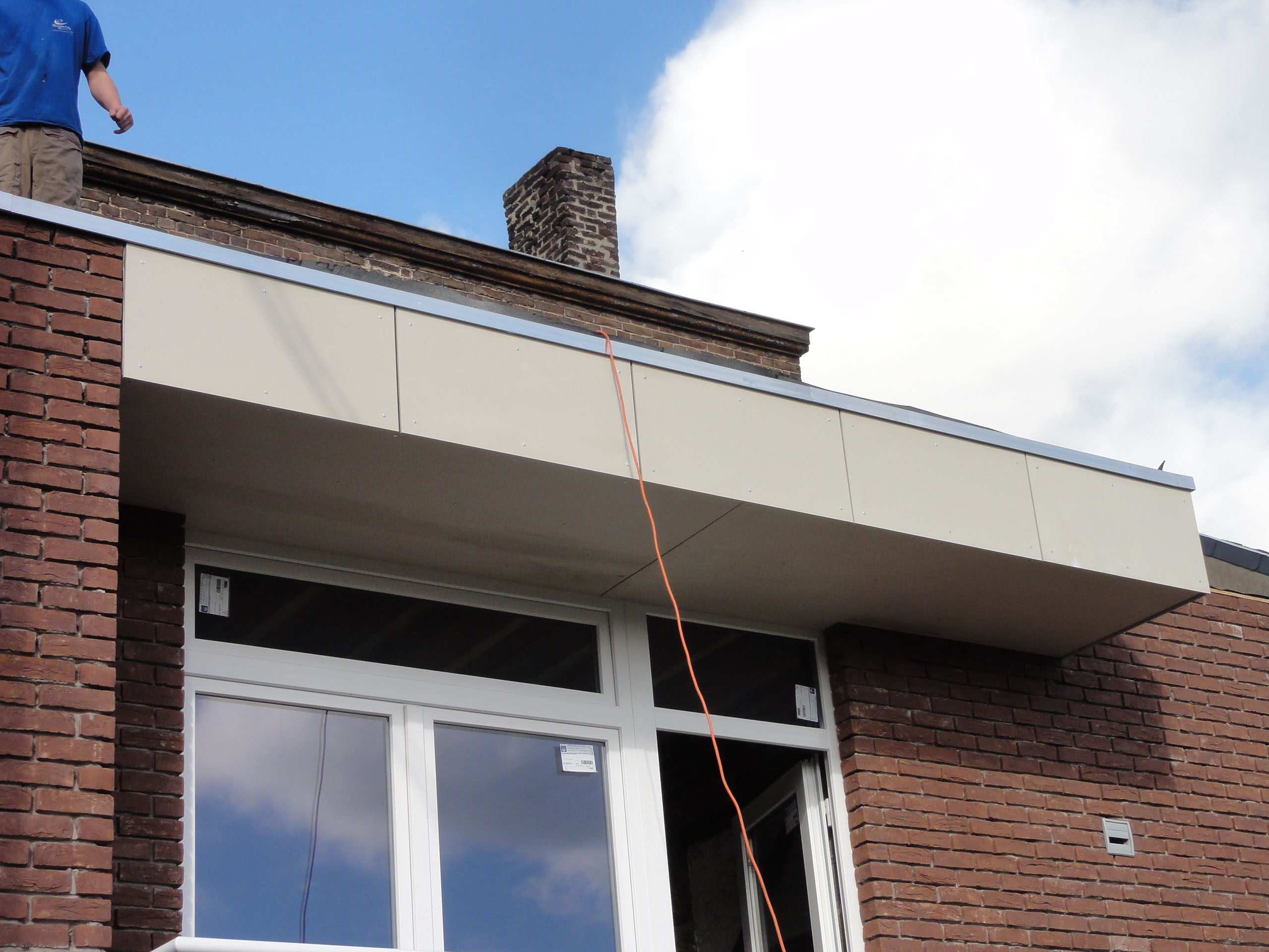 Plafond et rive de toiture réalisée à l'aide de panneaux de fibro-ciment.