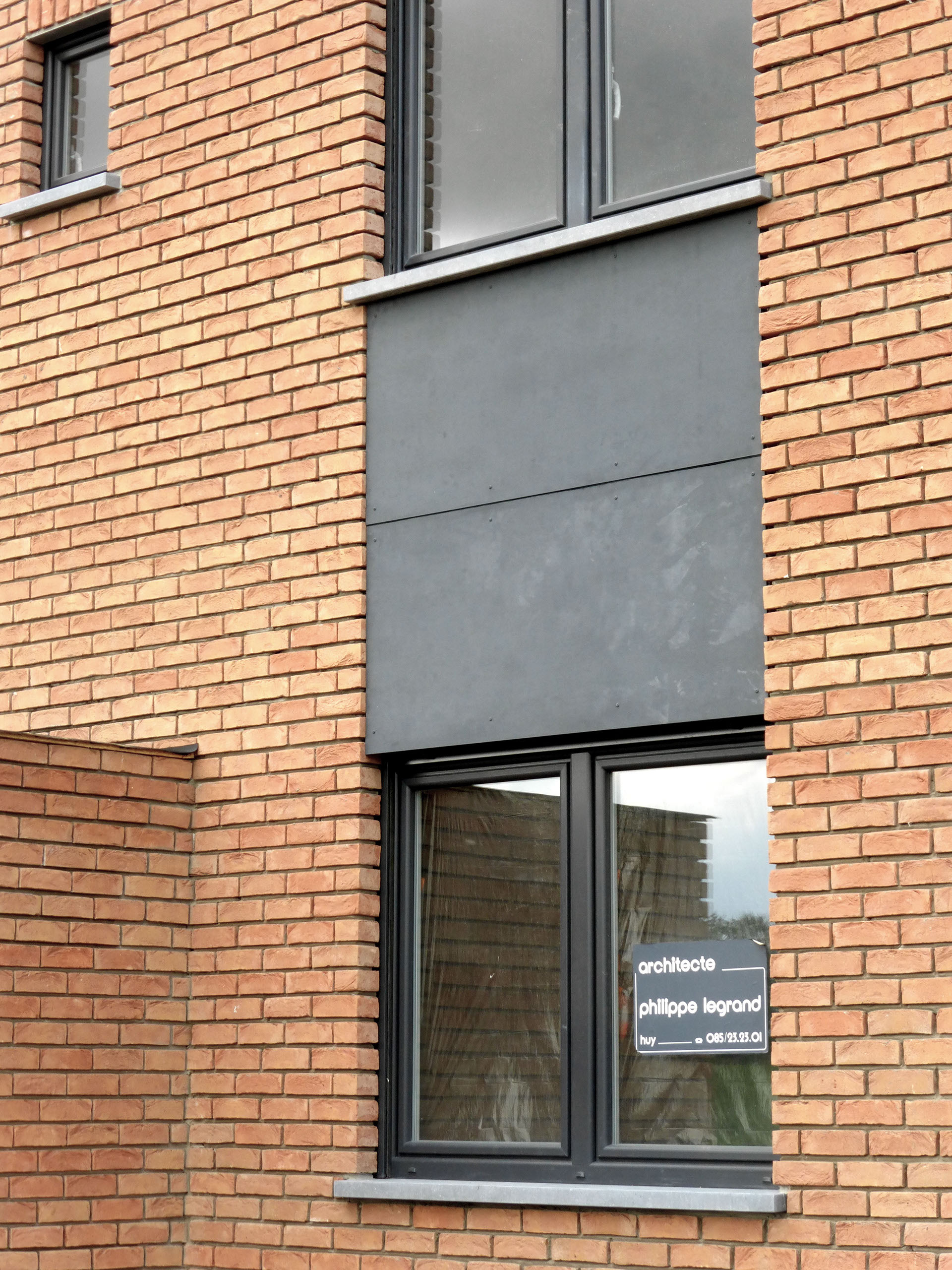 Baies liaisonnées à l'aide de panneaux en fibro-ciment, pour une dominante verticale..